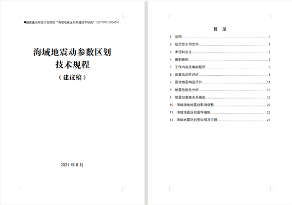該項(xiàng)目取得了豐碩的成果,豐富了我國(guó)海域及鄰區(qū)基礎(chǔ)資料,構(gòu)建了我國(guó)海域及鄰區(qū)地震構(gòu)造與活動(dòng)性模型;建立了適用于中國(guó)海域的地震動(dòng)預(yù)測(cè)模型,揭示了海洋工程場(chǎng)地地震動(dòng)影響特征,提出了面向典型海洋工程的地震設(shè)防關(guān)鍵參數(shù);發(fā)展了陸海一體地震區(qū)劃編制方法,形成了海域地震區(qū)劃編制技術(shù)規(guī)程,通過示范區(qū)地震區(qū)劃圖的編制,展示了技術(shù)方法的適用性。目前已服務(wù)于部分海洋工程建設(shè)和海域地震趨勢(shì)分析等,取得了良好的經(jīng)濟(jì)和社會(huì)效益,為我國(guó)海—陸一體地震區(qū)劃圖的編制提供了關(guān)鍵基礎(chǔ)。