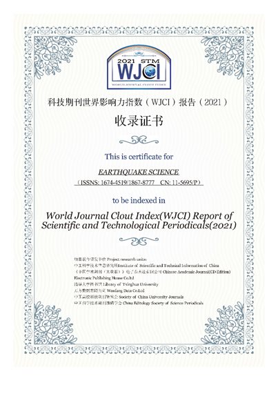 我所英文科技期刊Earthquake Science入選《世界期刊影響力指數(shù)報告》(2021版)
