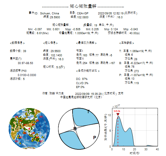 地震發(fā)生后,中國地震局地球物理研究所立即啟動震后科技應(yīng)急處置預(yù)案,產(chǎn)出了震源參數(shù)和破裂過程、余震序列精定位、地震動強(qiáng)度預(yù)測圖等科技支撐產(chǎn)品。