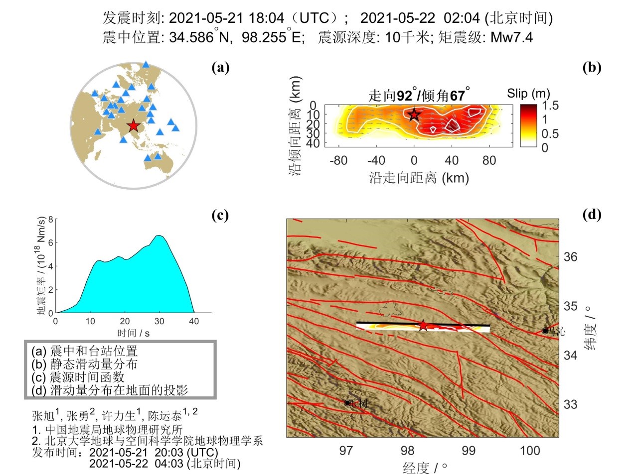 2021年5月22日青海瑪多MW7.4級地震破裂過程快速產(chǎn)出結(jié)果圖