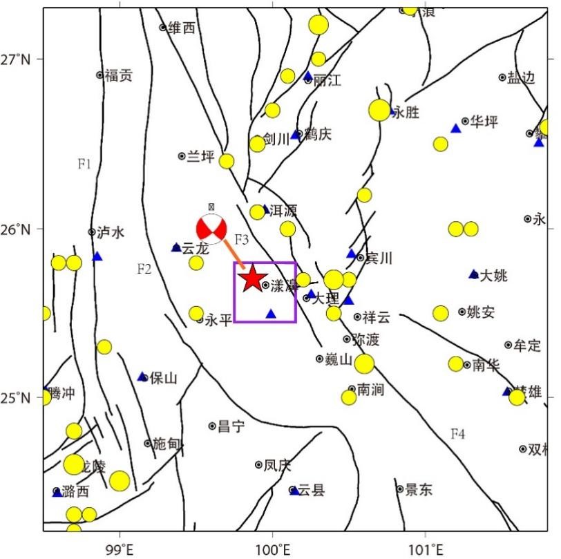 圖5 云南漾濞Ms6.4地震震中及斷裂分布圖