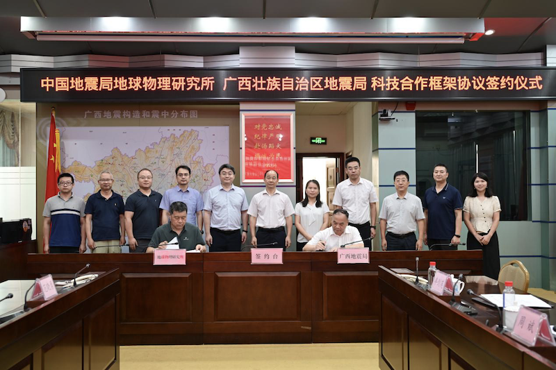 為貫徹落實(shí)《關(guān)于推動(dòng)省級(jí)地震局賦能增效促發(fā)展的實(shí)施意見(jiàn)》文件精神,加強(qiáng)與省級(jí)地震局科技合作,強(qiáng)化科技賦能和公共服務(wù)能力,2024年8月初,中國(guó)地震局地球物理研究所黨委書(shū)記李明一行6人赴廣西壯族自治區(qū)地震局開(kāi)展科技合作交流并簽署科技合作框架協(xié)議。廣西地震局黨組書(shū)記、局長(zhǎng)黃國(guó)華出席簽約儀式。