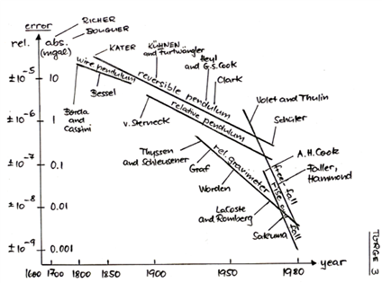 圖3 絕對(duì)重力測(cè)量技術(shù)的發(fā)展與測(cè)量準(zhǔn)確度的提高