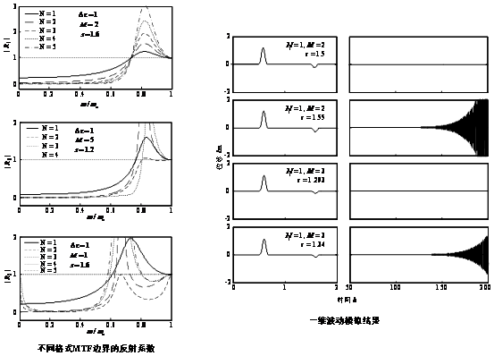 圖2 不同格式MTF邊界的反射系數(shù)以及一維波動(dòng)模擬結(jié)果