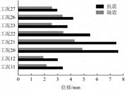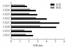圖4 抗震結(jié)構(gòu)和隔震結(jié)構(gòu)的主結(jié)構(gòu)層位移對比 |