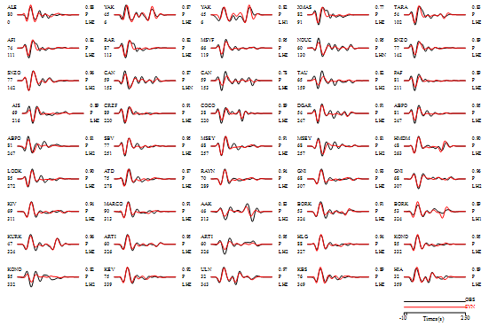 張旭等利用遠場體波數(shù)據(jù)反演得到了此次地震破裂過程的初步結(jié)果。反演結(jié)果表明此次地震的破裂持續(xù)時間不超過25秒,主要破裂長度約40—50千米,最大滑動量近2米。