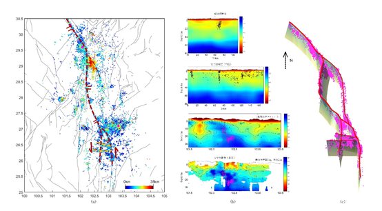項(xiàng)目對安寧河—則木河—小江斷裂帶開展了密集臺陣觀測研究,獲得了斷裂帶及周邊地區(qū)高精度地震活動分布圖像、多尺度地震波速度模型、電導(dǎo)率結(jié)構(gòu)模型和斷裂帶幾何分布特征。與高溫高壓巖石物理實(shí)驗(yàn)和斷層摩擦實(shí)驗(yàn)相結(jié)合,確定了安寧河-則木河-小江斷層帶的巖性結(jié)構(gòu)、流變結(jié)構(gòu)、滑動穩(wěn)定性與地震成核條件。發(fā)展的多種地震檢測和成像技術(shù)方法已在公開的培訓(xùn)班和學(xué)術(shù)交流會上介紹和公開共享。