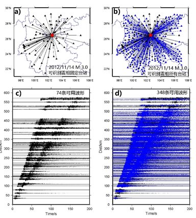 圖2 密集臺(tái)陣震相識(shí)別獲取更多的走時(shí)數(shù)據(jù)