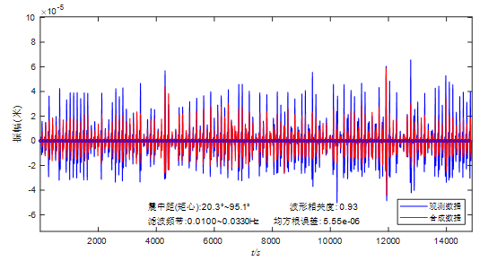 張喆等的矩心矩張量反演采用了震中距20.37°~95.00°范圍的123道長周期垂直分量體波數(shù)據(jù),基于時空網(wǎng)格搜索和同步源反演確定了矩心位置、矩張量解與其對應(yīng)的震源時間函數(shù),獲得的最優(yōu)模型結(jié)果顯示,此次地震的標(biāo)量地震矩為1.3261×1020牛·米、矩震級Mw為7.35,矩心坐標(biāo)為北緯19.1981度、西經(jīng)172.1601度、矩心深度24.0公里。斷層面解為節(jié)面I:走向215°/傾角052°/滑動角094°,節(jié)面II:走向028°/傾角039°/滑動角084°。雙力偶成分占比85%,觀測數(shù)據(jù)與合成數(shù)據(jù)整體相關(guān)度為0.93。