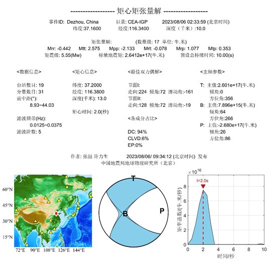 2023年8月6日山東德州市平原縣5.5級地震 科技支撐簡報(bào)(Ⅱ)