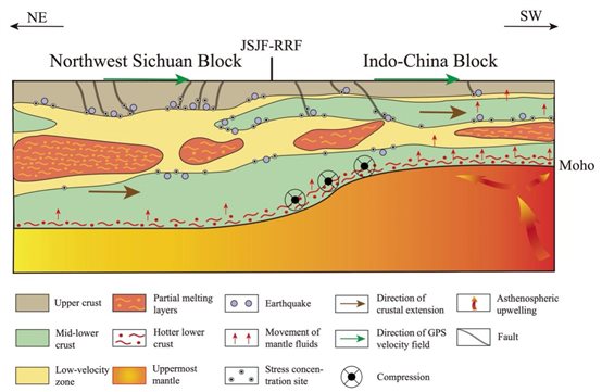 本研究構(gòu)建了東構(gòu)造結(jié)東南段高分辨率的三維S波速度和各向異性模型,揭示了該區(qū)域地殼變形以部分熔融的局部物質(zhì)流為主,中地殼熔體的伸展變形對地震活動有顯著的控制作用。該成果2025年2月16日發(fā)表在國際學術(shù)期刊