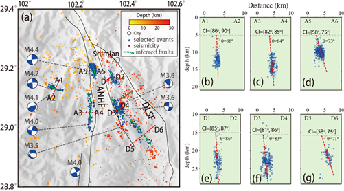 圖2 安寧河—大涼山斷裂帶北段的地震活動特征及斷層幾何
