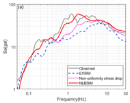 中國地震局地球物理研究所俞瑞芳研究員團隊發(fā)展和完善了隨機有限斷層法,建立了能夠表征地震動低頻成分、且適合工程應用的寬頻帶地震動模擬方法。首先,通過在確定性的子源位錯模型中加入服從k平方分布的隨機滑移量,模擬更加符合真實情況的斷層破裂;然后通過采用表征子源非均勻應力降的動拐角頻率模型,優(yōu)化理論震源譜;最后,通過在子源幅值譜中引入低頻濾波函數(shù),補償由于路徑效應簡化等不確定性因素導致的低頻模擬誤差。通過對汶川地震記錄的模擬表明,本文建立的方法能夠較好地模擬基巖場地加速度時程的幅值和頻譜(圖1),但對地震動低頻分量的合理估計依賴于先驗目標譜的選擇。基于建立的寬頻帶地震動模擬方法,對白鶴灘壩址最大可信地震動參數(shù)進行了綜合評價,給出了不同層次和風險水平的地震動參數(shù)(圖2),可為近場大震作用下300m級的高壩抗震安全評估提供合理的地震動輸入。