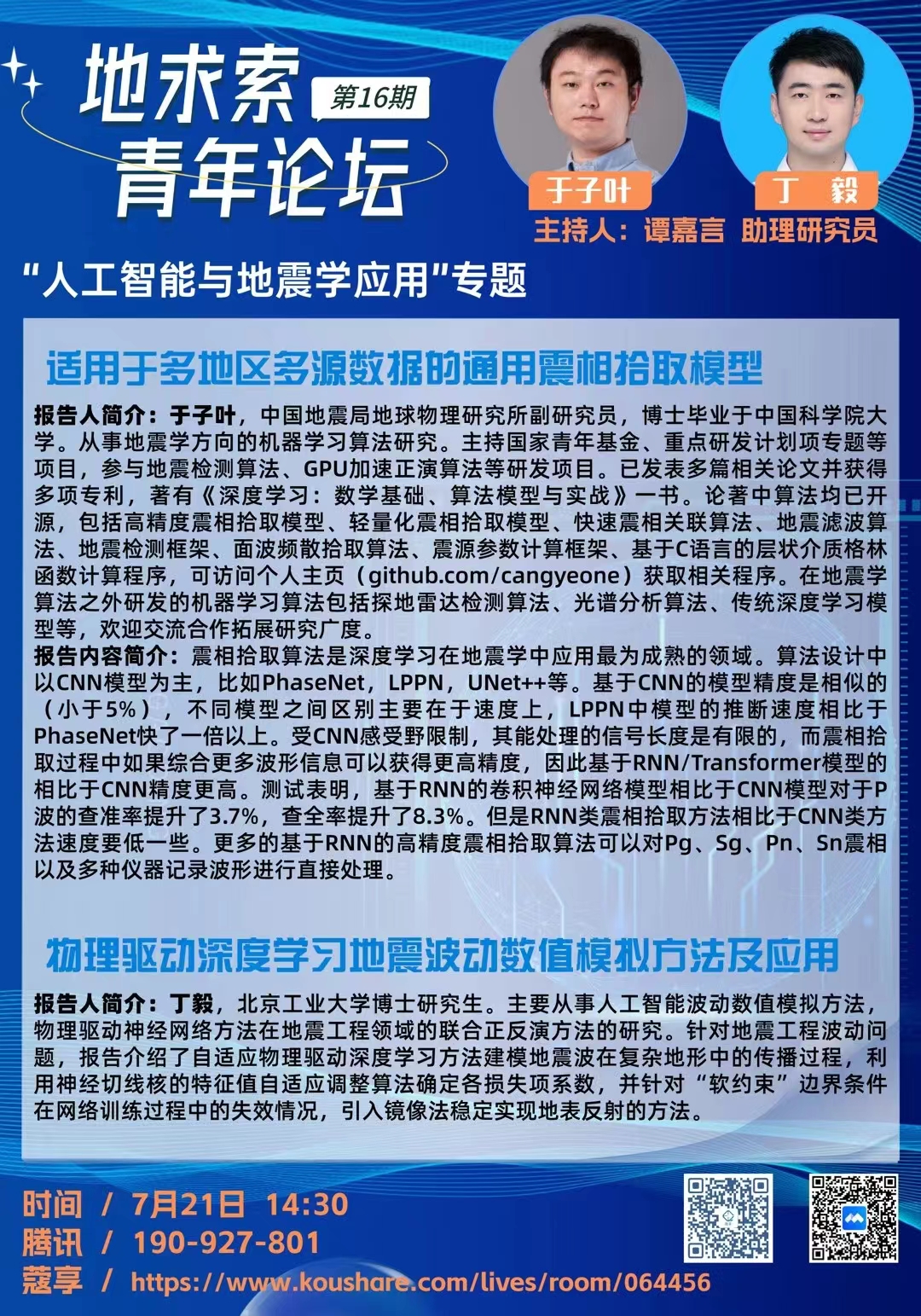 地求索·青年論壇第十六期“人工智能與地震應(yīng)用”專題