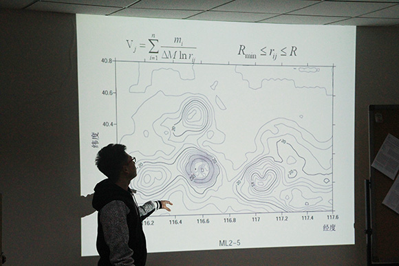 根據(jù)活動(dòng)規(guī)則,沙龍形式為每人2-4分鐘的口頭交流和2分鐘左右的現(xiàn)場(chǎng)互動(dòng)。其中,陳峰交流了“GPS地震學(xué)應(yīng)用”的學(xué)習(xí)心得;李佳威分享了“首都圈預(yù)警原型系統(tǒng)預(yù)警盲區(qū)”的一些新成果;張?jiān)迄i帶領(lǐng)大家學(xué)習(xí)了“層析成像程序”;畢金猛分享了“余震短期發(fā)生率預(yù)測(cè)效能評(píng)估”一些待發(fā)表的最新成果;齊夢(mèng)雪做了題為“三河-平谷大震區(qū)地下結(jié)構(gòu)特性”的文獻(xiàn)報(bào)告;蔣策分享了“近震P波S波自動(dòng)識(shí)別”工作動(dòng)態(tài);張哲講解了“地震密度”的概念;鄭拓分享了出野外的經(jīng)歷;孔韓東介紹了其整理的文獻(xiàn)綜述“天然地震與人工地震識(shí)別判據(jù)”;李乾峰介紹了“沙土液化判別”;張喆介紹了“超剪切破裂”;劉翰林分享了野外經(jīng)歷及介紹了一些地震數(shù)據(jù)處理的方法。未參與分享的同學(xué)同樣和大家進(jìn)行了熱烈的討論。