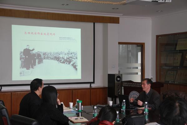 張國民老師首先對邢臺地震震情做了簡單介紹,并深情回顧了周總理對災(zāi)區(qū)的考察過程。張老師回憶當(dāng)時和周總理的一個小插曲:當(dāng)周總理得知張國民老師是研究生時,問張老師:“你研究出什么東西沒有?。?rdquo;張老師緊張得趕緊回答說:“沒有,沒有,還沒有。” 周恩來總理當(dāng)時指示:“希望在你們這一代解決地震預(yù)報問題。”之后,張國民老師就大陸地震頻繁性、地震空間非均勻性、時間非平穩(wěn)性和強震活動時間遷移等方面詳細介紹了我國大陸強震的總體特征。