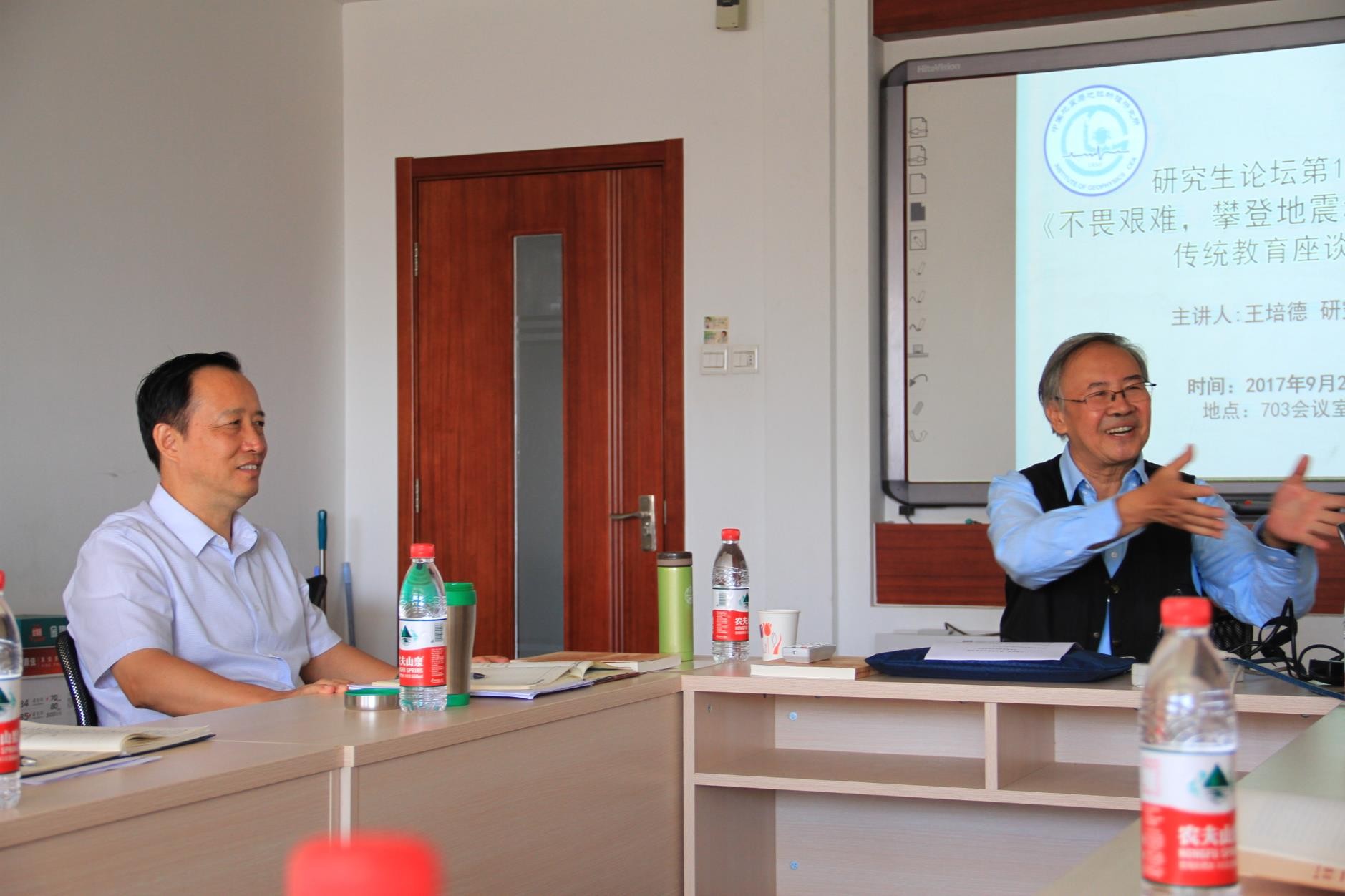 2017年9月22日,離退休辦聯(lián)合研究生會(huì)舉辦了研究生論壇第159期學(xué)術(shù)報(bào)告,邀請(qǐng)了退休職工、現(xiàn)任九三學(xué)社中央科學(xué)技術(shù)專(zhuān)門(mén)委員會(huì)副主任的王培德研究員,報(bào)告主題《不畏艱難,攀登地震科研新高峰》。本次會(huì)議由喬書(shū)記主持,并邀請(qǐng)各個(gè)實(shí)驗(yàn)室眾位研究人員和全所研究生參加。