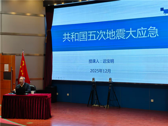 為深入學(xué)習(xí)貫徹習(xí)近平總書記關(guān)于防災(zāi)減災(zāi)救災(zāi)重要論述,引導(dǎo)青年學(xué)子深刻理解中國特色應(yīng)急管理道路,弘揚地震科技工作者的奉獻(xiàn)與創(chuàng)新精神,2025年12月10日上午,我所特邀防災(zāi)科技學(xué)院原副校長遲寶明教授,為全體研究生帶來一堂主題鮮明、內(nèi)容厚重的思政課——“中華人民共和國五次地震大應(yīng)急”。